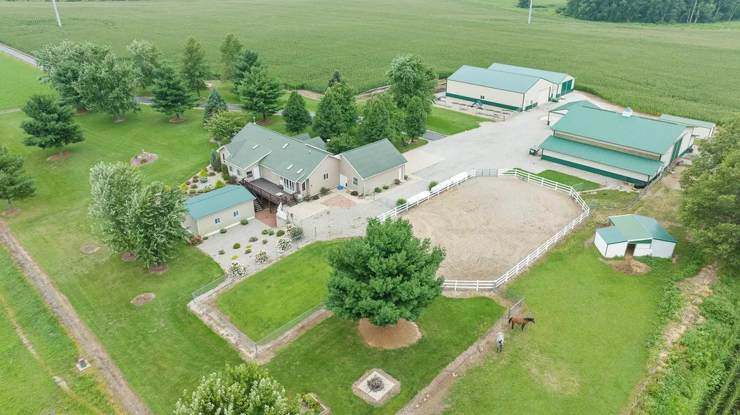 Welcome to a home/land that has one of everything you want or need. Off the 2,000+ ft, freshly paved drive sits a 5-bedroom 3 Full bath home with a rare 251+/- acres. Solar panels(owned) were installed in 2018. The horse barn is a 60x84 - 48x72 pole barn constructed in 2019 and another constructed in 32x72 2020. This home has a horse stable in the barn that attach to a riding arena and a large paddock that the home overlooks. There are 122+/-ac of great tiled tillable ground. The planted food plot alfalfa fields with tower blinds make for exceptional hunting. This land has produced 2 Boone and Crocket bucks and 3 in the Indiana record book with many other great whitetails. There are some wetlands to the NE corner that brings in many duck and many other flighted animals for great views/hunting. This property borders DNR wetlands which makes this tract hunt bigger and expands the views. Many things can be said about this home, but you need to view it to take it all in!