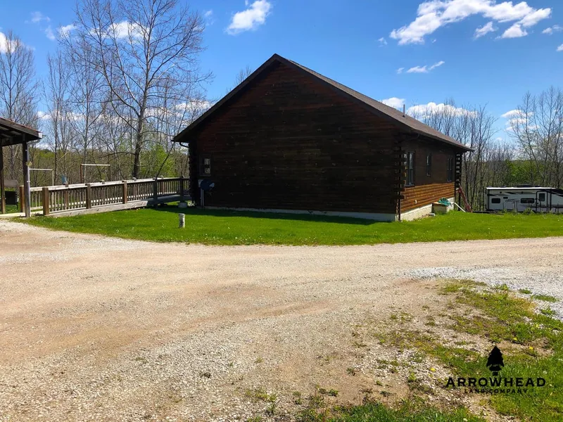Large Tract farm with home, barn, creeks, pasture, woods, and beautiful views. Are you looking for a large turnkey farm where you can also live in one of the best deer hunting counties in Ohio? Do you like creeks, beautiful fields and pastures, and flat to gently rolling topography? How about an awesome 1600 square foot/three bedroom log cabin home, with a heated 2400 square foot pole building beside it? As you walk into the cabin you will be greeted by an inviting open space layout in the large kitchen, dining and living areas. The kitchen has custom solid cherry cabinets, and an incredible cherry corner cabinet that you must see. As you look around the other areas of the cabin you will notice the incredible wood flooring which is Australian Cypress tongue and groove with a subfloor of pine. You need to see the large hand hewn Red Pine logs used for floor joists. The living room has 14 foot ceilings finished in beautiful pine, recessed lighting, and the many windows allow natural light to set off this beautiful interior. The laundry area and upstairs bathroom is just off the master bedroom. The basement has an open ceiling and you can feast your eyes upon the logs that were used to make the bones of this awesome building. The basement has two bedrooms and a bathroom and plenty of storage. There is an additional room that's being used as a farm office. The first floor, and basement level both have really nice back porches with great views of the farm. The top floor patio has double doors that exit out onto a wooden covered living area that really will be the site for many family gatherings and events. You can see a large part of the farm from here, you will really appreciate the views. The bottom floor patio is a combination of sandstone walls and brick. It empties out into a beautiful backyard. You will really appreciate the large three bay pole building barn, with overhang for vehicle parking. The barn has a heated floor, insulated, and is very convenient to the home for all the farm projects you will be doing. There is a large outdoor dual fuel wood/gas stove beside the barn also that feeds the house and barn. Are you a hunter or outdoors person? Well, this property is located in a fantastic area for whitetails and turkey. This farm holds wildlife because it has water, food, cover, and with its roads and access you will be able to target giant whitetails here. The seller reports that some of the best wildlife sightings are from the back porch. If you are looking for a large acre tract of pasture land, you will want to see this land. It is completely fenced, has multiple water sources, and has two squeeze chutes for loading cows. One of the chutes has electricity and a scale on site and the squeeze chute castings were actually hand poured by the owner. The fields are clean and you will really appreciate the access when you work this farm, as there are many gated entrances and getting around the farm is quite simple. The property has excellent access to all fields and woods via county, township and farm roads. There are some additional sources of income here also, the pasture land is leased to a local farmer who is utilizing the farm for cows. Some interesting info about this farm: Just a couple years ago the owner's family used to work the farm on horseback with dogs. That's something to be said in this modern day of technology. Exact acreage subject to survey. Please call Brian Whitt, 937.545.7764 , or Josh Grant, 330.341.0997 for complete details of this property and showing.