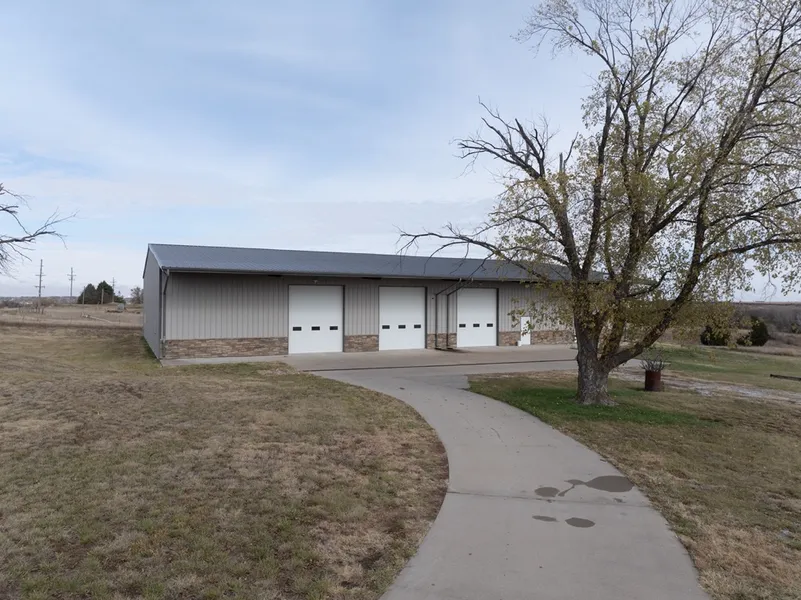 Just minutes from Fairbury, Nebraska, and only seven miles from the Kansas border, this exceptional property offers the perfect blend of comfort and utility on a spacious footprint. The 80x120 building boasts a 7,200-square-foot shop, complete with three 12x14 electric overhead doors, a convenient half bath, and cozy floor heating throughout. Attached to this incredible workspace is a 3,400-square-foot residence designed with accessibility and elegance in mind. Featuring four bedrooms, two and a half baths and an office, the residence includes 36-inch doors throughout and beautiful hickory cabinetry complemented by granite countertops. The home's stunning bar and fireplace are crafted from Arizona rock, adding unique character to the main living space. The luxurious primary suite includes patio access and a private bath with a Jacuzzi hot tub, offering a relaxing retreat. Upstairs, you'l...