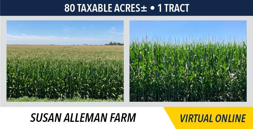 The Alleman farm will be sold on a price per acre basis, based on taxable acres.
