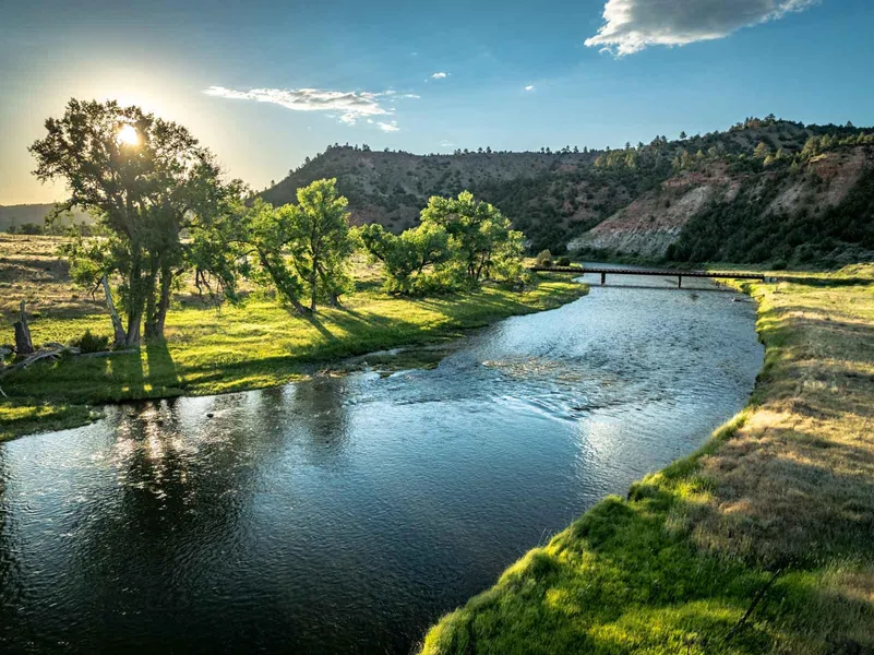 The Lazy XY Ranch consists of 906+/- deeded acres and just under 2.5 miles of a tailwater trout fishery. In addition to controlling both sides of the Tongue River, there is a productive agricultural operation providing rich irrigated fields that draw in trophy quality deer and some of Montanas best waterfowl hunting. The wild upland game bird populations are very stable and strong. This combines nicely with a bird release license the property maintains that allows for an extended upland hunting season. The 162+/- acres of sprinkler irrigated fields draw their water through pumps from the river. There is the option of pumping from seven Coal-Bed Methane (CBM) wells converted for water application and agricultural use. The water from these CBM wells is potable and is a significant asset to the ranch and can be converted for other uses. The propertys major improvements include one four...