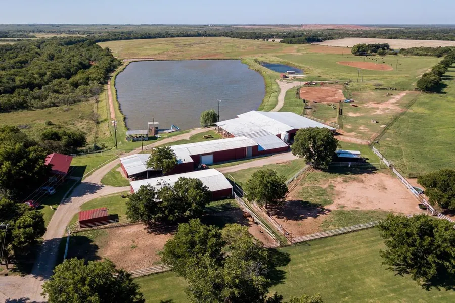 Land: The majority of the land is open with scattered trees, 78 acres of tillable farmland, 8 acres of flood irrigated coastal. The Wichita River serves as the eastern boundary. Along the river is heavily wooded. The highest elevated points are where the improvements are located, which are outside the flood plain. The remainder is level to sloping towards the river. The majority of the boundary is fenced with interior cross fencing with barbed wire. There is metal pipe and sucker rod fencing around the improvements. There is a brand new water well just south of the big barn, the owner estimated it to be 32' deep and produces around 8 gallons per minute. Surface water consist of 3 stock ponds and a 8 acre lake. The lake is fed by irrigation water during the summer and spring months.