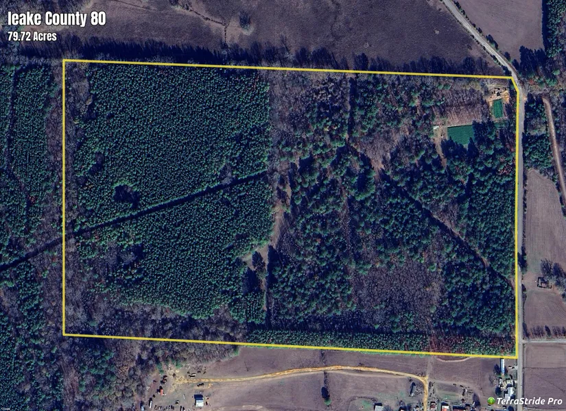79+/- Acres in western Leake County mile from the Madison County line and only mile from the Natchez Trace on Swamp Road. The property is level and consists of about 20 acres of 18 year old pine, 27 acres of 12 year old pine and 2 acres of prepared garden area. The remaining acreage is hardwood timber and old cow ponds. The road system is very good with a perimeter road and interior roads. Water and electricity runs along Swamp Road and to the interior of this property waiting for the new owner to build a house or cabin.