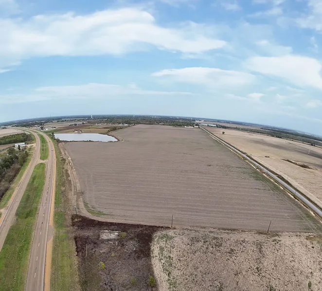 Of the total 80 acres, a 70 acre tract is currently an income producing row crop farm. Although the property is priced as a commercial site, continuing to rent the farmland can bring $150 per cultivatable acre. The soil type consists of alligator clay, and a variety of crops can be planted, including soybeans, wheat, or corn. Additionally, a 10 acre pond is situated on the northeast corner of the property.