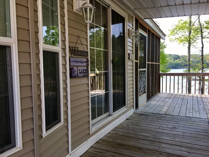 Perfect weekend getaway located in Sunset Point. This charming park model home sits on year around water with wide water views and comes furnished. The kitchen offers upgraded cabinetry, stainless appliances, and a dining area with table. In the large master bedroom there is a electric fireplace, queen bed, and built in cabinetry. Home has new TV with integrated surround sound. Outside a grilling deck overlooks the lake. This charming get-away also features a large screened in porch with a separate laundry room. This property is maintenance free so you can enjoy the lake with worrying about the up keep. Sunset Point Subdivision offers a boat ramp, common area dock, and boat slips. The HOA dues of $75 a month cover water, grass cutting, trash pickup, and lawn maintenance.