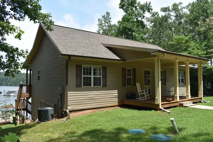 Perfect lake home in a great location with beautiful wide water views. A long circular driveway leads to a 4 bedroom 3 bath home situated at the water's edge with no steps to the floating dock. Inside the home on the main level you will find the living room, kitchen, master suite, and a second bedroom and bath. An open floor plan joins the living room and the kitchen. In the living room you will find vaulted ceilings, a stacked stone fireplace, and access to the deck that stretches across the back of the home. The master bedroom offers double doors leading to a screed in porch overlooking the lake. Stainless steel appliances can be found in the kitchen which stay with the home. On the terrace level you will find a second living room, a partially finished kitchenette, two more roomy bedrooms, and a third full bath. From the terrace living room, double doors open to the patio. This lake ho...