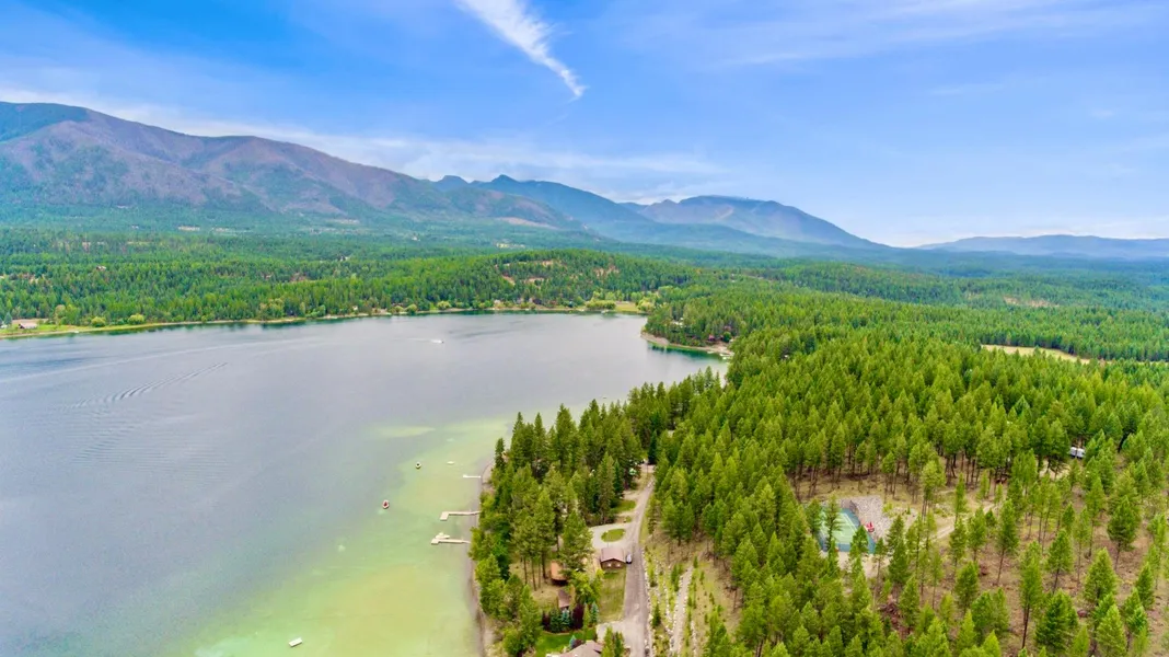 The expansive picture window frames a breathtaking panorama of Glen Lake's vibrant turquoise waters, with a backdrop of tree-lined shores, sandy beaches, and majestic mountains. This 2,880-square-foot lake house boasts 3 bedrooms, 2 bathrooms, an open floor plan, and a shed for kayaks and firewood. Woodburning stoves in both the upstairs and downstairs living areas provide a cozy ambiance. The interior design features wood finishes, seamlessly blending the home with its forest surroundings. A dock permit accompanies the property, allowing for the construction of a personal dock to accommodate kayaks, canoes, or boats, offering a perfect spot for sunbathing while listening to the gentle lapping of the water. Glen Lake, a highly sought-after location, provides ample fishing opportunities with an array of fish species like Kokanee, Rainbow Trout, and Yellow Perch. Wildlife enthusiasts can enjoy observing local fauna such as geese, herons, and ducks amidst the tranquil 301-acre lake. Located just 60 miles south of Glen Lake, Kalispell, Montana, offers convenient access via two airports: Kalispell City Airport and Glacier International Airport. The nearby Eureka area, predominantly government-owned, provides a plethora of recreational activities including hiking, camping, hunting, horseback riding, and ATV adventures. Embrace the quintessential Montana lifestyle by embracing the serene lakefront living that Glen Lake epitomizes.