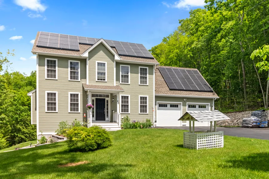 Like NEW 4 bedroom 2.5 bath Colonial on 2 acre lot! So many amenities lovingly added by the one owner to make this even better than new. The rear lot has privacy galore and a 27' above ground pool with oversized deck and firepit patio for your year round entertaining and relaxing. Gorgeous landscaping has sprinkler system, invisible fence for the pets, 10 x 10 shed and raised bed garden with wooded buffer for beauty and privacy. Security system with armed doors and windows in addition to cameras. Solar is provided by Sunrun and, along with propane hydro air heating, make this home extremely energy efficient. Awesome walk out basement is unfinished (heated/cooled with mini splits) approx 800 sf with 10 ft ceilings and serves as a fully equipped gym with all contents negotiable for reasonable sale (not included in price of home) Much more to love about this home, but too much to list. It'...