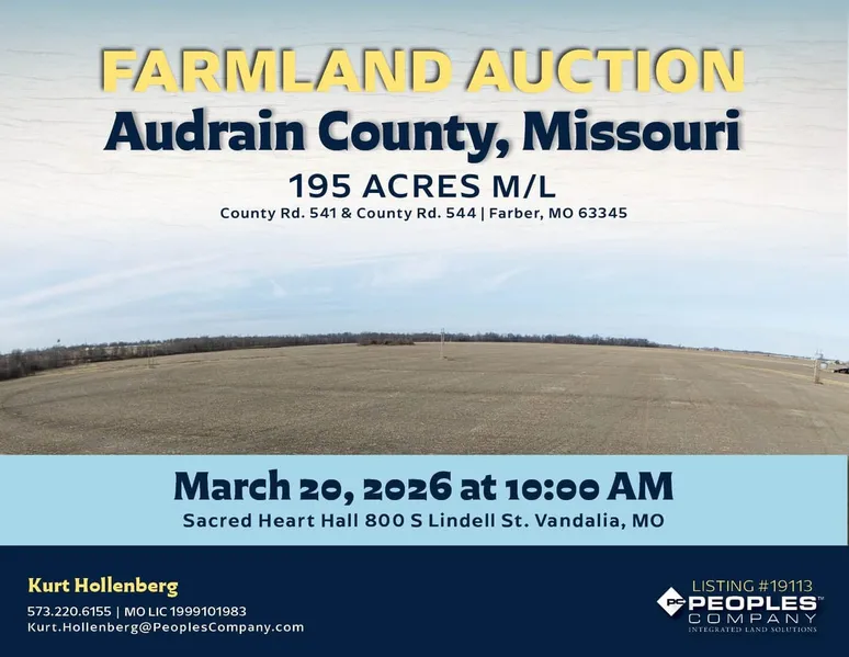 Mark your calendar for March 20th at 10:00 AM CT for the Dennis and Ruth Foree Trust Land Auction, offering 195 acres m/l with approximately 175 tillable acres in Audrain County, Missouri.