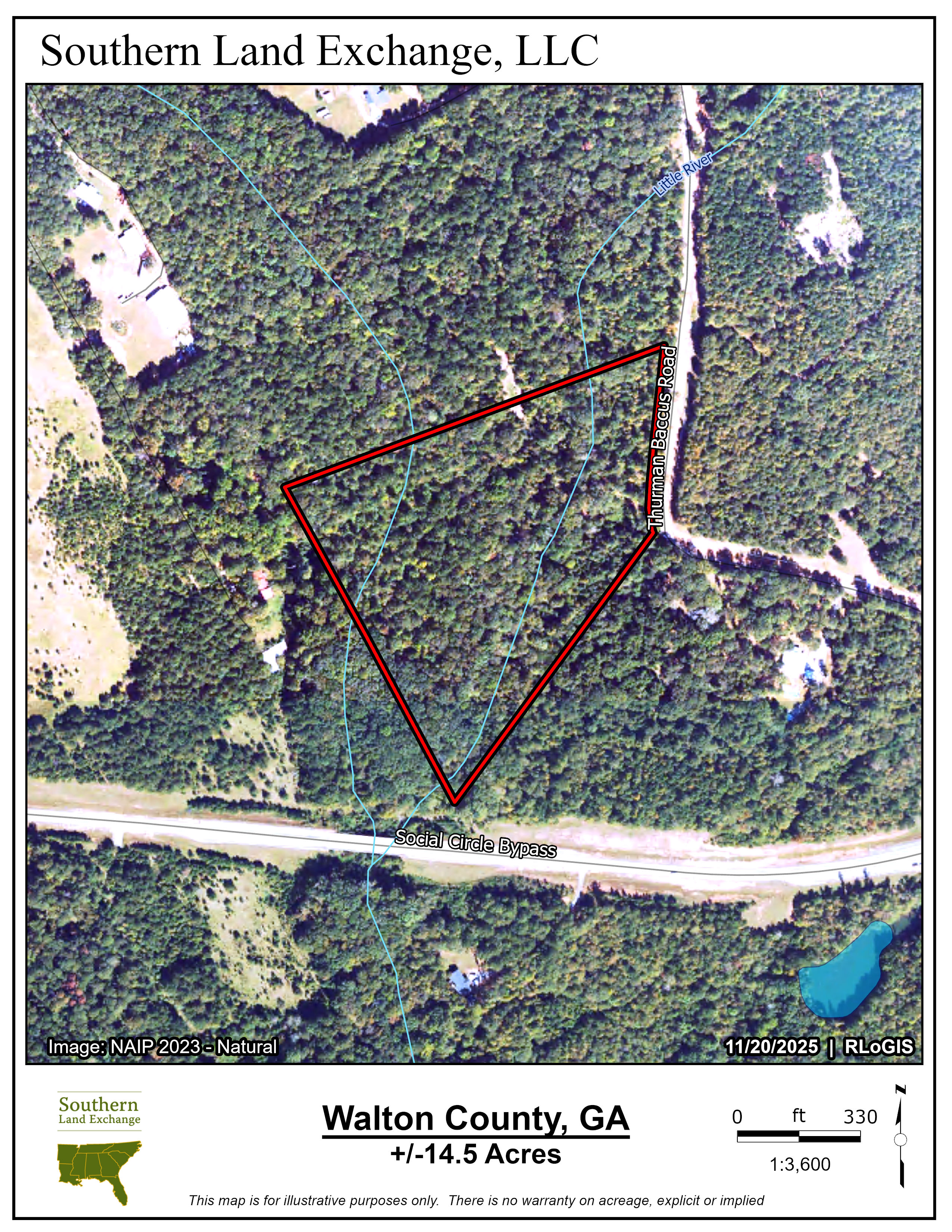 Southern Land Exchange is proud to present Little River Tract - a 14.5 acre property located in the desirable City of Social Circle. Social Circle is known for its small-town charm, good schools and proximity to Atlanta. Little River Tract gets its name from the beautiful Little River that runs through the property. With over 1,000 feet of frontage on both sides of the river, beautiful rock shoals and small swimming holes, Little River is a great water feature. Abundant wildlife makes this property an excellent option for recreational minded buyers looking for a place to build their home while also enjoying the great outdoors. In addition to Little River, there is also a small creek that runs through the property, improving the wildlife habitat even more. There are multiple potential homesites on the property. The site at the road is the most convenient for getting construction trucks in and out. There is also beautiful build site towards the middle of the property, however there would be a creek crossing. There is approx. 500 feet of paved frontage on Thurman Baccus Road. As for location, the new elementary school adjoins the southwest boundary line of the subject property. Downtown Social Circle is less than 2 miles away and it's about 1 hour to the Atlanta Airport. Little River Tract is one of the best price-to-acreage properties available in Social Circle! Call Travis Ebbert at 706-614-8840 for more information and to schedule a time to tour the property.