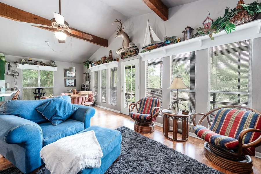 2 lots on the water PLUS a dry lot with shop! This 3-bedroom, 2-bath home offers the perfect blend of comfort, outdoor living, and functionality. Situated on two beautifully treed lots along Caney Creek, the property features its own private fishing pier and boat ramp, making it a dream spot for anyone who loves life on the water.