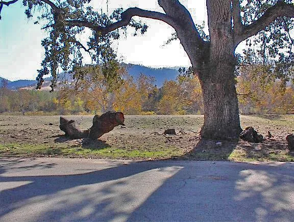 This is one of the larger lots in Wonder Valley. It has a huge signature oak tree along the road frontage and some large sycamores in back along the creek. Although Mill Creek is dry during the summer months it has some very impressive flows during the winter and spring. The well is a very nice 15gpm and a large building pad has been constructed about 1/3 of the way into the lot.
