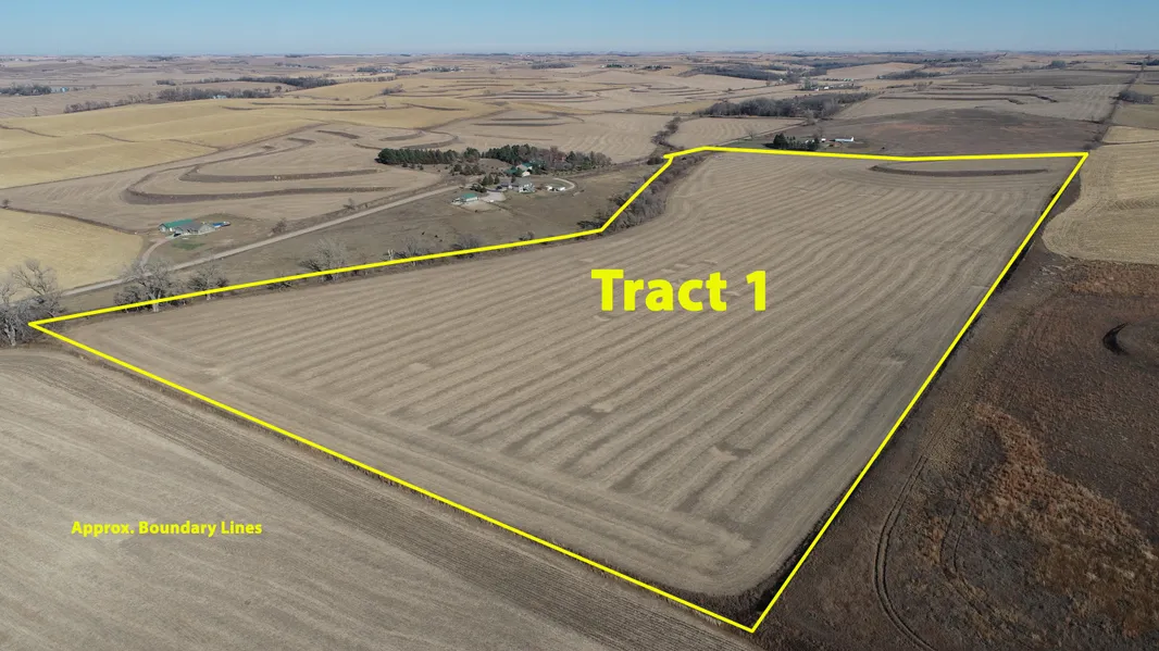 General description of Tract 1: According to the county assessor, this property contains 64.12+/- taxable acres. According to FSA/Agri-Data, this farm contains approx. 59.38+/- tillable acres with the remainder in waterway and road/ditch. This farm is classified as NHEL. The predominant soil types include: 670-Rawles, 1E3-Ida, 12B, C-Napier, 1C3, D3-Ida. The average CSR2 is 71.5 and the average CSR1 is 64.1. This farm has a corn base only which is combined with the adjoining farmland with a PLC yield on corn of 161bu. This land is in a great location and has an excellent topography! If you are looking to purchase a nice Woodbury County, IA farm then do not pass up this opportunity to purchase this tract of farmland! Land in Floyd TWP is not always available to purchase at auction! This is a wonderful farm with great soil ratings and is a nice farm to operate and has an excellent yield history with proven yields for the last 5 years of 231bu to 245bu on corn and 57bu to 67bu on soybeans! Do not pass up the opportunity to purchase this farm! Tract 1 will not be surveyed and will be sold based on the gross taxable county acres.
