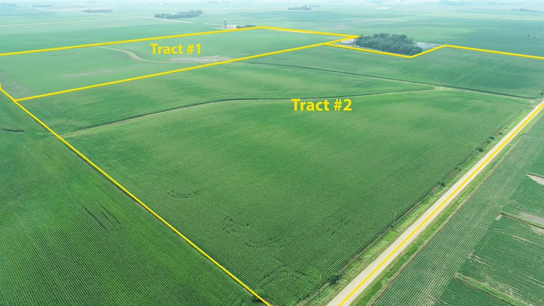 Location: From Ashton, IA at HWY 60 go 1 mile East on 230th St. to Olive Ave. then go North on Olive Ave for 1 mile to 220th St. then go East on 220th St. for 2 miles to Pierce Ave then go 1/2 mile North to the Farmland The two tracts are adjoining and Tract 1 lies on the East side of Pierce Ave and Tract 2 is directly adjoining Tract 1 to the North and adjoins Pierce Ave and 210th St. on the North side.