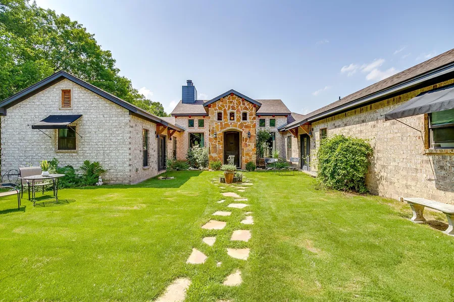 The home was meticulously designed & completed in 2019. The u-shape design centers around the grand living room w beamed vaulted ceilings, beautiful kitchen & fenced front courtyard. The kitchen features custom cabinetry, beautiful natural countertops, gas range & large eat-in island. Primary suite, office, bonus living room & laundry share one wing. Primary suite features private covered patio, custom Mexican built vanities, walk-in shower, & garden tub. The secondary beds w jack-and-jill bath occupy the opposite wing.