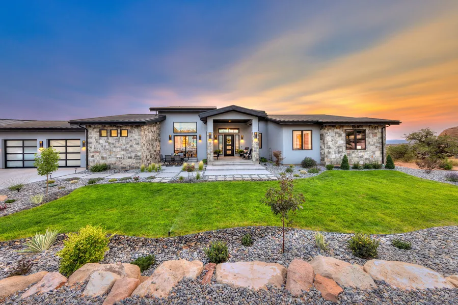Living Life Elevated. This contemporary beauty combines modern conveniences with classic, timeless touches throughout. This unique location is surrounded on three sides with 12.51 acres of open space, offering seclusion and unobstructed views. This residence is just minutes from downtown Moab. This stunning beauty is being offered fully furnished. The home features oak-wrapped solid core doors, custom built-in cabinetry throughout, marble and quartz countertops. The kitchen boasts impressive 9-foot high windows above the sink, capturing the incredible elevated valley views of Spanish Valley and Moab Rim. It includes an Italian-made Verona range, stunning handmade cabinetry, beautiful countertops, and elegant lighting. Adjacent to the kitchen is a spacious walk-in pantry equipped with a pot filler for easy water filtration. The living room is complimented with 16-foot coffered ceilings, 12-foot high commercial-grade windows, a large gas-powered fireplace, and a mechanical TV mount that conceals the television within the built-in cabinetry. Each room is thoughtfully designed and beautifully decorated. The garage offers three car door openings and approximately 3.5 car spaces, totaling 1,226 square feet. It is well-laid-out and heated for the winter months. The front yard features a private pickleball court, beautiful landscaping, and a charming shaded patio. The back patio spans the entire width of the house, providing multiple entertaining areas. Additionally, electrical connections are available off the master bedroom for a hot tub.