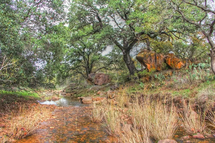 There are several earthen tanks on the ranch, however most of them are not deep enough to hold year -round water. With that said however, these areas, as well as other nice draws on the property, can provide the opportunity to construct large bodies of surface water. The seasonal creek will run and hold pockets of water with normal rain fall. Although it is currently dry, it is still a beautiful walk up and down the creek to see the gorgeous large hardwoods and beautiful rock outcroppings. If you like seeing and hearing the native Texas songbirds, this is a great place to sit and enjoy them!