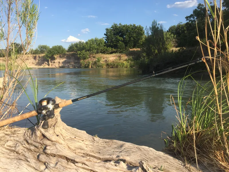 rock fireplace, large open porches overlooking river, approximately 1000' of Llano