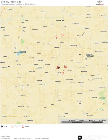 Loblolly Ridge is a 2,250 acre timberland tract located in Choctaw County, Alabama and Clarke County, Mississippi, situated in a proven and active wood basket supported by multiple regional sawmills. The property offers a strong combination of near-term harvest opportunity, long-term timber growth, and excellent operational access, making it well suited for regional timber operators and high-net-worth buyers. The tract has been actively managed for timber production and is supported by a well-maintained internal road system that provides access across much of the property. Topography ranges from rolling to hilly with natural drainage, typical of the region and familiar to local operators.