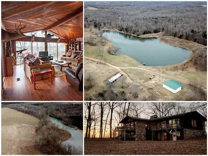 From the fertile bottom fields along the river and hardwood ridges, to the rustic 3-4 bed, 2.5 bath home sitting over the private lake, these 587 acres are nothing short of perfect. Watch your crops grow or your cattle roam as you plan your next fishing trip from your private boat ramp on the trophy waters of the Eleven Point River. The home with its generous large windows ensures sightings of the abundant wildlife on this property. Sitting at the end of a dead end road, you are ensured peace and relaxation year-round. The large master suit upstairs offers easy access to the kitchen and living room with its welcoming stone fireplace and vaulted ceilings. The walkout basement has 2-3 bedrooms, full bath, and a living area to accommodate family or guests.