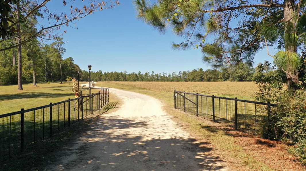 East Brewton, Al- Looking for your own glorious piece of country? Look no father than this 65.50-acre farmland/with its own Log Cabin. IMMEDIATE FARMING INCOME with 63.5 acres of farmland leased for $100.00/acre through the end of the year. This can be re-leased. In prior years this gorgeous property was a hunting camp so the privacy is valuable. Property is located 17 miles from Brewton, Al., 25 miles to Crestview, Fl. and 25 miles to Milton, Fl. East Brewton is a community located on the Alabama/Florida line..Sweet Home Alabama. This beautiful 1 1/2 story home has beautiful cedar siding on the outside. It has a cozy front porch and an outdoor kitchen, hot tub, and fireplace on the back porch. It has 3 large bedrooms, 3 full baths. The upstairs bedroom has a full bath and its own balcony. Interior walls are Juniper/ Cedar, some sheetrock. The home has hardwood floors, travertine floors, and tile. Stainless stove updated in 2022, dishwasher/refrigerator 2019. Countertops are traventine, except upstairs bath has slate. There's also beautiful slate on the front porch and carport. HCAV was updated in 2021. There are (2) wells on the property, a (4) inch and a (2) inch. The sprinkler systems run off the (4) inch well keeping all the beautiful flowers watered. The Pole barn is great for storing equipment/ plus a shop/lean-to behind the house. It has an electric gate for entering the property.