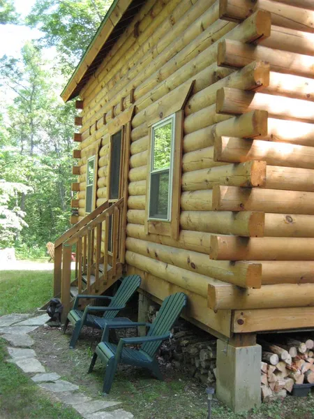 The insulated cabin, new in 2007 features the ambiance you'd expect from a retreat in the woods, with a main floor kitchen and dining area, and an open vaulted ceiling styled living room. There is a wood burning stove with a stone hearth to keep you warm in the winter. In the summertime take in the picturesque views from the screen door that is...