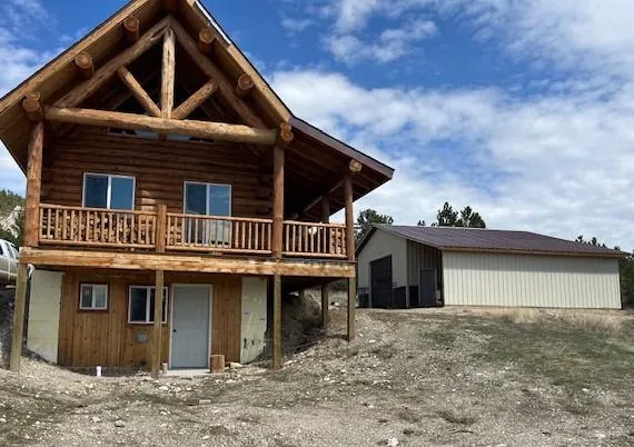 Nestled in the landscapes of Landusky, Montana, lies a charming log home, built in 2021. 1258 square feet of rustic charm, and surrounded by the breathtaking views of the mountains and the Missouri River Breaks. With one bedroom and two bathrooms, it offers comfort, while its spacious covered deck invites you to soak in the beauty of nature. Beneath lies a walk out basement, promising ample storage along with a bed and bathroom. Situated on a generous 9.95-acre plot, the property also features a 24 x 30 insulated shop, complete with a 12 x 30 attached carport, offering both utility and convenience for the avid hobbyist or tinkerer. Whether seeking a tranquil weekend getaway or year-round serenity, this retreat becks a promise of peaceful living while taking in Montana's rugged beauty