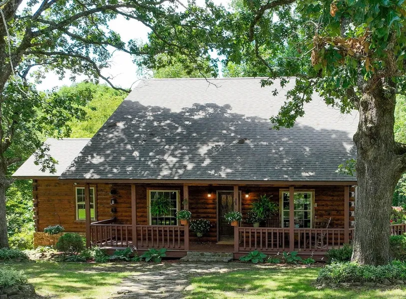 $30K Below Appraisal! Beautiful 3-bedroom, 2-bath log home on a gently sloping 1-acre lot in an established, well-maintained neighborhood just 4 miles from the Stone County Courthouse Square in Mountain View. Convenient to the White River and local amenities, this property offers a perfect blend of comfort, space, and natural beauty. The upper level features solid hickory wood floors, a large great room with vaulted ceiling and cozy gas log fireplace, a spacious dining area, and a well-appointed kitchen. Also on this level are a generous bedroom, full bath with whirlpool tub, and an office area. The walkout basement offers 9-foot ceilings, a second living area, full kitchen, two bedrooms, full bath, laundry room, a hobby/office space, and a private back porch—ideal for guests or extended family. Enjoy outdoor living on the wrap-around porch surrounded by mature oak trees. The 30x40 garage/shop includes three bays, a built-in workbench, and a large loft for additional storage. Built in 2006, this 2,612 sq ft home has been lovingly maintained. Both the house and shop received new roofs in 2024. Don’t miss this rare opportunity to own a beautifully maintained home in the Ozarks!