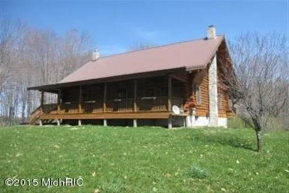 This property is located in Newaygo County only 3 1/2 miles northeast of Fremont. The property is approximately half tillable and half woodland. There is a nice pond visible from the cabin that attracts a wide variety of wildlife. A good population of deer and turkey call this parcel home. This log home features a metal roof walkout basement and a covered porch. The home has two bedrooms, three full baths and offers many features only seen on high-end homes. A Two car detached garage is available for vehicles and equipment storage If you are looking for a country estate only a few miles from a nice town this property should be toured.