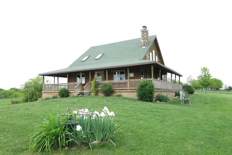 This is what we all dream of. A true log home in the country with a million dollar view! Reminds you of Big Sky Country! This immaculate home has all wood inside with car siding, wood floors and a neat stone fireplace in the living area. The home has 3 levels. The large loft is all open and overlooks the living area. It is split into two areas, one side is approx. 15x18 with a full bath and the other side is 18x18. Great place to put extra beds or a huge office. The main level has an open floor plan with the kitchen/living area as one large room, walk-in pantry, bedroom, and full bath with walk-in shower. The lower level has a massive 16x30 bedroom with sitting area, 13x8 walk-in closet, 15x9 bedroom, full bath that serves as a storm shelter with 6x6 concrete walls, and utility room. Lots of windows in the bedroom to bring in abundant light. Step out of your master bedroom into a nice warm hot tub and enjoy the sunset from your patio. And, the home comes fully furnished. There is a covered porch on three sides to sit and enjoy those lazy summer days and watch the wildlife.