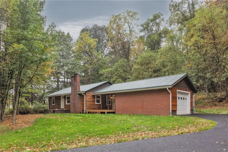 Discover rustic charm and modern comfort in this beautifully restored log cabin on 2+ wooded acres in Hempfield. Solid log construction boasts a recent exterior restoration with sandblasting, sealing, chinking, and a new metal roof for years of durability. Inside, enjoy the warmth of log cabin style with modern updates—stone fireplace, butcher block counters, stainless steel appliances, refinished hardwood floors, and a brand-new bath. Flex room in the lower level offers potential for a 3rd bedroom, providing versatile living. A connecting room between the home and garage is ideal as a mudroom, office, or playroom. Relax on the covered front porch overlooking serene grounds with a chicken coop/garden shed, or gather around one of two wood-burning fireplaces. The bright, clean basement offers added potential. Option to purchase adjoining 8.6 acres would expand this private retreat to over 10 acres. Minutes to Toll 66 and Greensburg, it’s the perfect mix of seclusion and convenience.