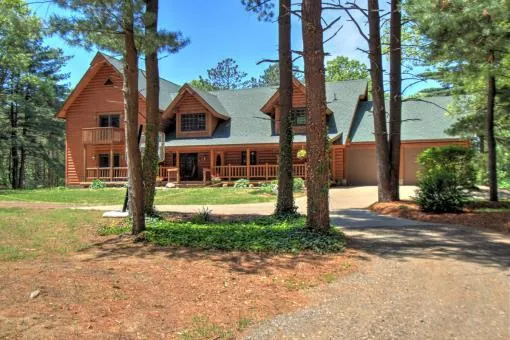 Gun Lake Area-Rocky Mountain Log Home on 15 acres of Pines, Pond & Stream near Grand Rapids and Kalamazoo. Fish, hunt or just enjoy the quiet breezes & sweet smell of Pines from the covered front porch or deck overlooking the backyard. Soaring Ceiling, Wall of Windows, massive Stone Fireplace w/Copper Canopy, Skylights & French doors are just the Great Room features. The Kitchen has Granite Countertops, Center Island/Snack Bar. Beyond the Kitchen is a bedroom, full bath w/laundry! In addition you'll find a very spacious master w/French Doors to a Screened in Porch, Private Bath & Walk in Closet. The Loft is spacious & features Full Bath w/Stone Soaker Tub. The second floor has 2 more bedrooms, w/Jack/Jill Bath. The Walkout level features a Wet Bar w/Seating for 10, bedroom & 2 full baths, home Gym. The French door to the bricked patio from which you can enjoy the decorator ponds w/cascad...