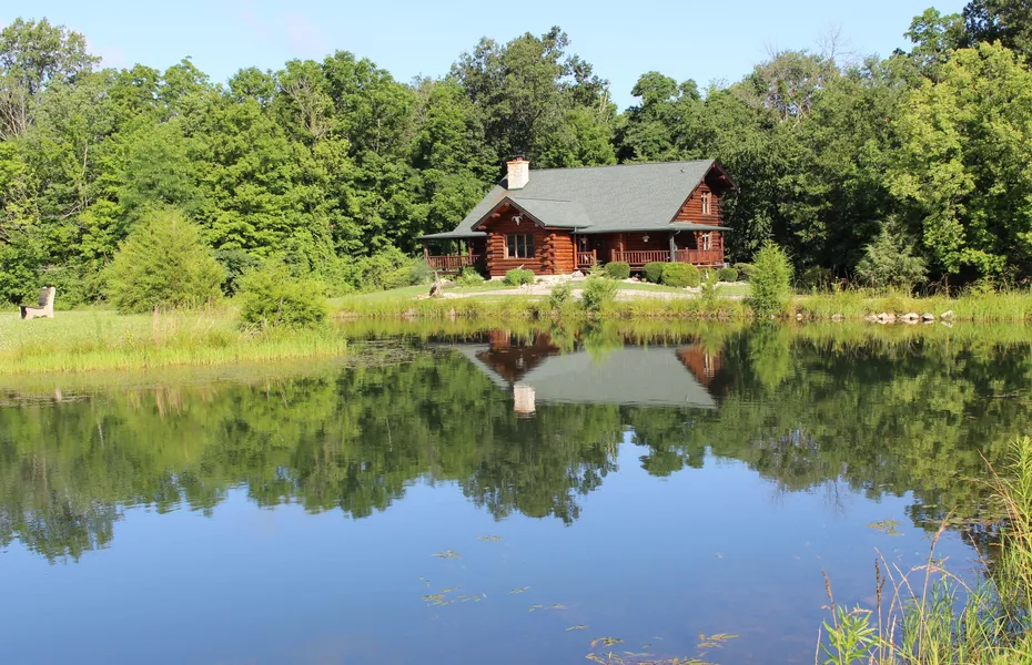 One of a kind pristine log home secluded on spectacular 17.1ac. Gorgeous 2+acre clear water lake with huge covered dock. 42 x 80 pole barn with shop & rec room. Home features large covered front & rear porches, 2story great room with stone fireplace, finished walkout basement with sauna. Home & property in spotless condition. Original owner. Don't miss this!