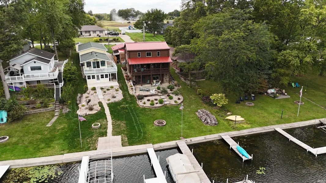 Motivated Seller's! This Lakefront log sided home is located along the picturesque shores of Sawmill Lake. Sawmill Lake is part of the Barbee Chain of Lakes that consists of 7 interconnected lakes with over 738 acres of aquatic paradise awaiting your exploration, including Big Barbee Lake, which is an all sports lake. The main level of the house greats you with cozy covered porch. This level consists of a spacious well appointed kitchen, dining area, full bath and living area. The covered back porch is the crown jewel of the property. Overlooking Sawmill Lake, this is bound to be your go to spot to relax when you are not out on the water. The upper level has an expansive main bedroom with full bath that features a huge tub, separate shower and dual sink vanity. The lower walk-out level is a warm and inviting space with a stone gas fireplace. The two wood piers are included in the sale and are set on 54' of concrete seawall. Let's not forget the graveled swimming area! This home features a studio apt. out front which has been nicely updated and includes a kitchen and full bath of its own. Fiber Optic Internet and home is not in a flood plain!