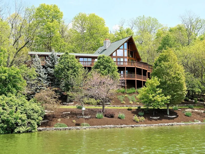 Welcome home to this spectacular Lindal Cedar Log home, nestled in trees on 3 lakefront lots in the center of Hidden Valley Lake! Custom designed & carefully engineered for its location, the home is uniquely private, surrounded by woods on three sides with spectacular water views from every room! Built with quality & attention to detail thru-out, the home offers an open flr plan w/soaring vaults & broad expanses of glass focused on the lake views. Expansive decking on both levels plus a spacious dock with boat slip at the waters edge provides the perfect for swimming or relaxing by the lake. 4 BR/3.5 BA, a total of 4,564 finished s.f. on 3 levels.