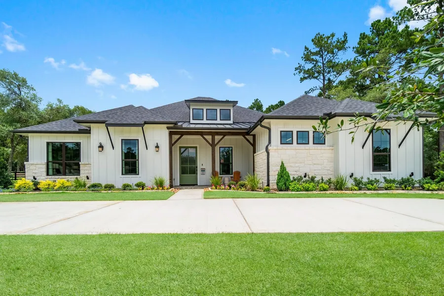 UNDER CONSTRUCTION – Expected Completion Spring 2026. Nestled in the beautiful new acreage community of Homestead Hill in New Waverly, just minutes from I-45. Timeless Hill Country charm meets modern comfort in Gracepoint Homes’ 3458 floor plan. This one-story home features four bedrooms with en-suite baths, a powder room, private study, and flexible bonus space at the rear of the home. The open-concept layout showcases a gourmet kitchen with walk-in pantry. The kitchen flows seamlessly into the great room and extended covered patio for effortless entertaining. The primary suite offers a spa-inspired bath and dual walk-in closets. With abundant storage. Also there is a three-car garage plus workshop area, this home perfectly blends thoughtful design, quality craftsmanship, and relaxed Hill Country living all within a gated community offering an excellent location with easy access to I-45...