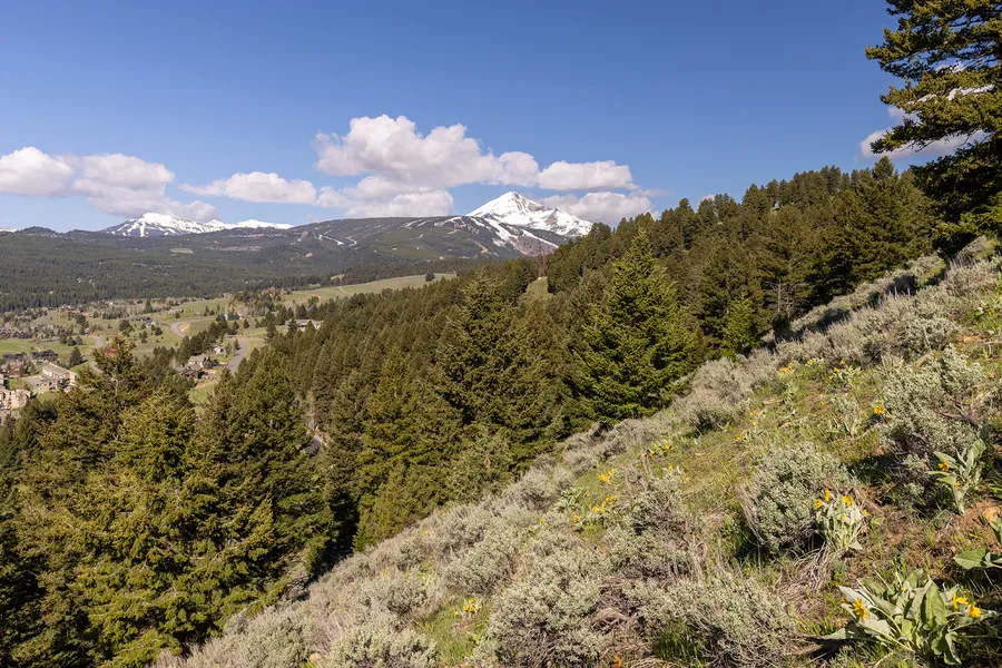 From this vantage point, the property boasts stunning south-facing views encompassing the entirety of Big Sky Meadow Village.