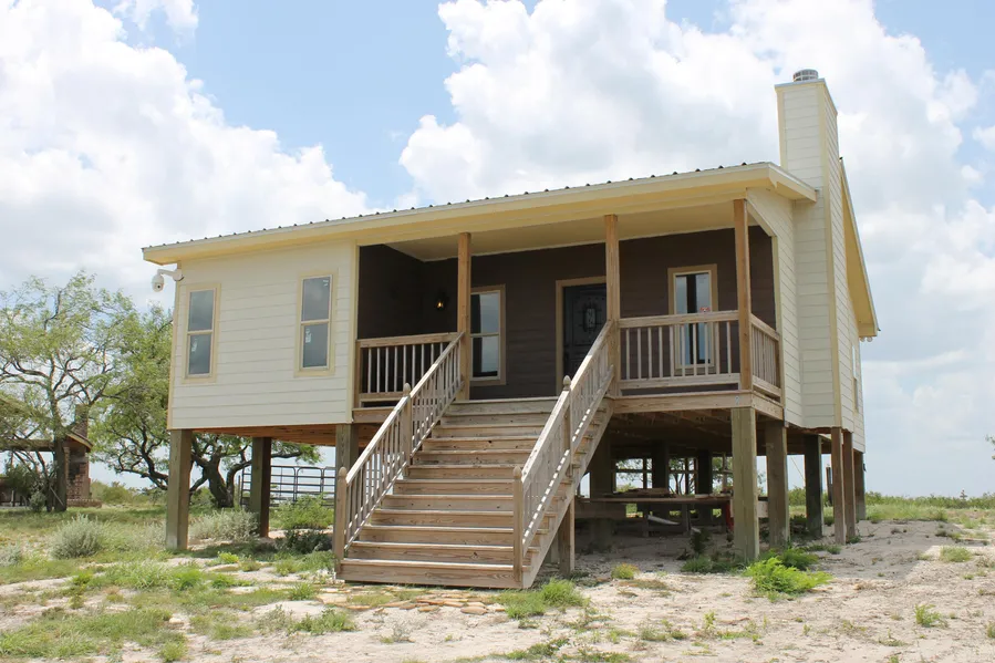 REDUCED! Rugged and rustic yet adorable new ranch construction on 10 acres west of Hwy. 281 off FM 624. Gas burning fireplace with stone facade and mesquite mantle. Stainless steel appliances in the kitchen~custom light fixtures. Panoramic views for miles and local game comes right into the back yard. You literally can hunt off your deck. Some items still unfinished but the infrastructure is here and it's all quality and new. Super outdoor kitchen going in and a nice metal barn for a workshop or the toys. Water well depth 380' drilled January 2015.