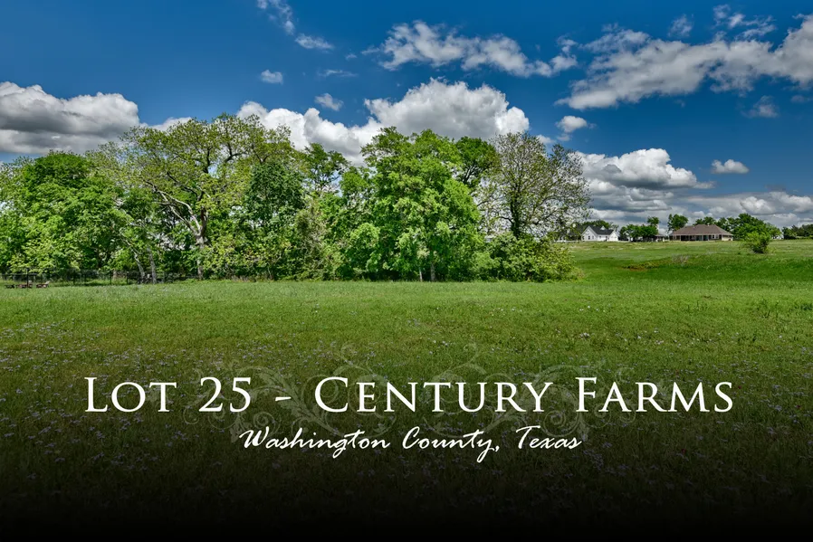 Prime lot location in Century Farms country subdivision featuring rolling hills and grassy meadows. Lot 25 offers great views of the neighboring pond and a wooded wet weather creek along the back boundary line provides a secluded building location. Located just East of Brenham this ideal location offers easy access to all the shopping areas being developed in Brenham just minutes away. Access to Houston, Austin and College Station make this location convenient for all your travel needs however once you build your home in Century Farms you may never want to leave.