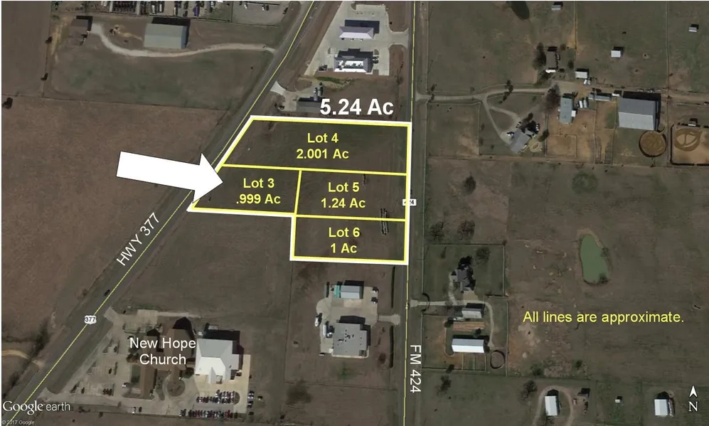 Research Parcel InformationNorth on 377. Property just south of where 377 and 424 meet.
