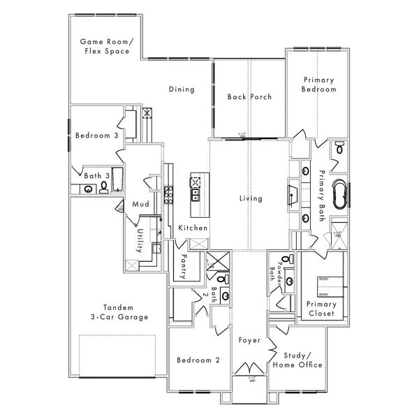 Custom builder Jamestown Estate Homes presents a stunning 1-Story, 3,174 sq ft home complete with 3 Bedrooms, 3.1 Baths, and a 3-Car Tandem Garage. Grand Entry with Home Office/Study found off, allowing for more privacy to work. The Living Area has a vaulted ceiling, gas log fireplace, and sliding doors that open to the Back Porch - perfect for Indoor/Outdoor Entertaining! This home features a true Chef's Kitchen complete with high-end appliances, including a slide-in 48-inch range with a double oven, custom-built cabinetry, and a spacious pantry. The Dining Area sits at the rear of the home and overlooks the Back Porch and spacious Backyard (room for a POOL!). Fabulous Primary Suite with space for a seating area. Primary Bath has separate vanities, a generous 67" soaking tub, an oversized shower, plus a walk-in closet with 2 built-in dressers. Secondary Bedrooms (2) have walk-in closets and Ensuite Baths. Tankless water heaters, foam attic insulation, and Uponor PEX water lines