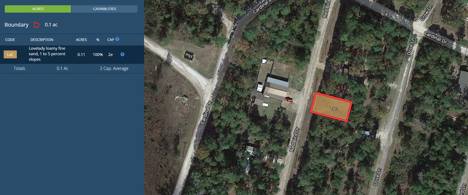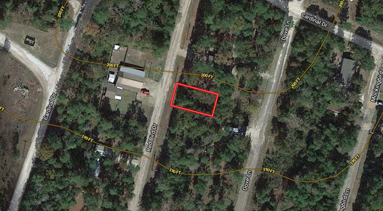 This property has 50 ft of road frontage and great privacy from your few neighbors. The dimensions of the property are 50 ft x 100 ft = 5,000 sq ft or 0.11 Acres.