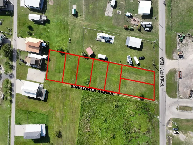 Motivated Seller!! Looking to start a project in Crystal Beach? This 7 lot package has so many possibilities. Located off South Crystal Beach Road, this property has a great location for an RV park, beach house development, or business location. The property is already split with 6 lots measuring 50 ft by 100 ft, and one lot measuring 73 by 100. Two lots face South Crystal Beach Road (lots 3 & 4), and five lots are accessible through Sunflower Avenue, a dedicated 30 foot easement for access to each lot. Lot 4 does have city water connected. Buyer is responsible for verifying availability of utilities. Minerals are reserved. Don't miss out on this opportunity!