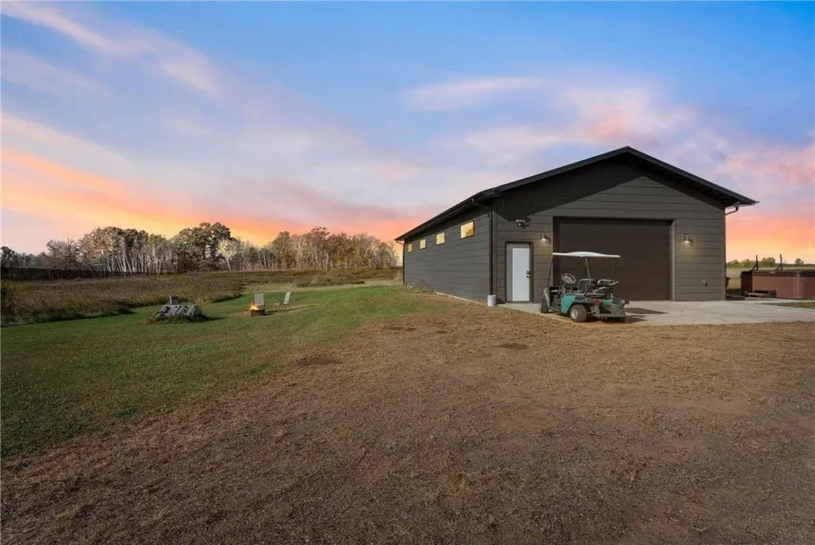 Beautiful 10-Acre Property with Heated Garage & Building Site Ready for Your New Home! Experience the perfect blend of privacy and convenience on these 10 rolling acres, featuring a long 500 ft driveway and existing electric service. The impressive 30’ x 60’ heated and insulated garage offers a concrete floor, 12.5 ft ceilings, two 10’ garage doors, a 3/4 bath, and laundry area—ideal for storage, hobbies, or temporary living while you build. Quality construction includes 2x6 framing, insulated windows and doors, and a durable standing seam metal roof with gutters. Well and septic were newly installed in 2022. Enjoy peaceful country living just 15 minutes from Pine City, 5 minutes to Lake Pokegama’s boat launch, 1 minute to the Snake River, and only an hour from the Twin Cities. Come see everything this exceptional property has to offer!