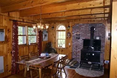 Charming, cozy home with beautiful wood flooring and an open concept Living room/kitchen/dining area, reproduction antique wood stove which is great for cooking and heat, situated on 4,8 acres more or less with year round brook, gazebo and fire pit . The property features three bedrooms, two baths, sunroom, detached garage and a covered front porch from which to enjoy the view. There is also a small garage like room with overhead door for storage and or workshop. New pressure tank for well and hot water heater.