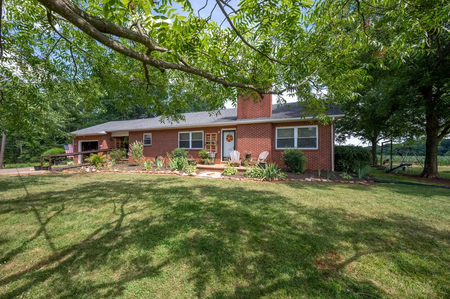 Lovely brick ranch in rural setting! Settle back on this relaxing front porch or in the splendid breezeway. Beautiful hardwoods in living room, dining room, and all bedrooms. Cozy wood-burning fireplace in living room. Spacious kitchen with plenty of cabinets for storage with laundry area within reach. Wood-burning fireplace in basement with plenty of storage. New windows and roof in 2014. Large yard with nice storage building, great for outdoor items.