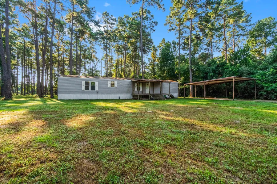 STUNNING COUNTRY SET UP! 4.6 PICTURESQUE ACRES WITH A 2019 MANUFACTURED HOME THAT IS READY FOR YOU! THIS IS A VERY USABLE PROPERTY WITH LEVEL TOPOGRAPHY THAT OFFERS SOARING PINES AND A BRUSH BUFFER ALL THE WAY AROUND FOR PRIVACY! THE ROOMY 3/2 MANUFACTURED HOME IS 6 YEARS YOUNG AND BOASTS AN OPEN FLOORPLAN WITH A SPACIOUS LIVING ROOM, LOVELY KITCHEN WITH BREAKFAST BAR, COZY BREAKFAST NOOK, INSIDE UTILITY ROOM, LARGE PRIMARY SUITE WITH WALK IN CLOSET, PRIMAY BATH WITH SOAKING TUB AND SEPARATE SHOWER, AMPLE SIZED SPARE BEDROOMS, AND A LARGE COVERED DECK FOR RELAXING! OTHER FANTASTIC AMENITIES ARE THE WOODEN BOARD FRONT FENCE WITH DRIVEWAY GATE, TWO CAR CARPORT, 40 FOOT STORAGE CONTAINER, AND 24X14 STORAGE BUILDING! LOW TAX RATE, NO HOA, NO MUD DISTRCIT, AND NO FLOODPLAIN!