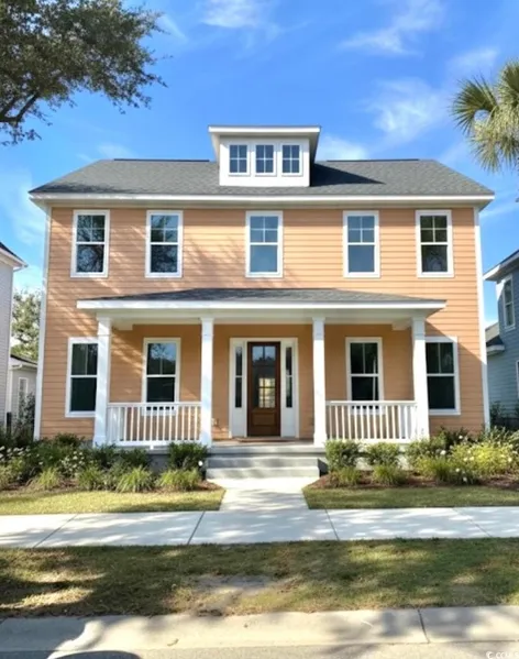 Discover your dream home in the highly sought-after Charleston Landing community in North Myrtle Beach! This custom-built 4-bedroom, 3-bath residence will feature stunning interiors, thoughtfully designed for both comfort and space. From high-end finishes to open-concept living, every detail is crafted for modern coastal living. The exterior will shine in a gorgeous Carolina peach color, offering standout curb appeal in this charming neighborhood. Located just minutes from the beach, shopping, restaurants, and more, this home offers both luxury and convenience. Primary photo is a generated rendering and not an exact photographic representation of home. Estimated completion: January 2026 – don't miss your chance to own a one-of-a-kind home near the coast!