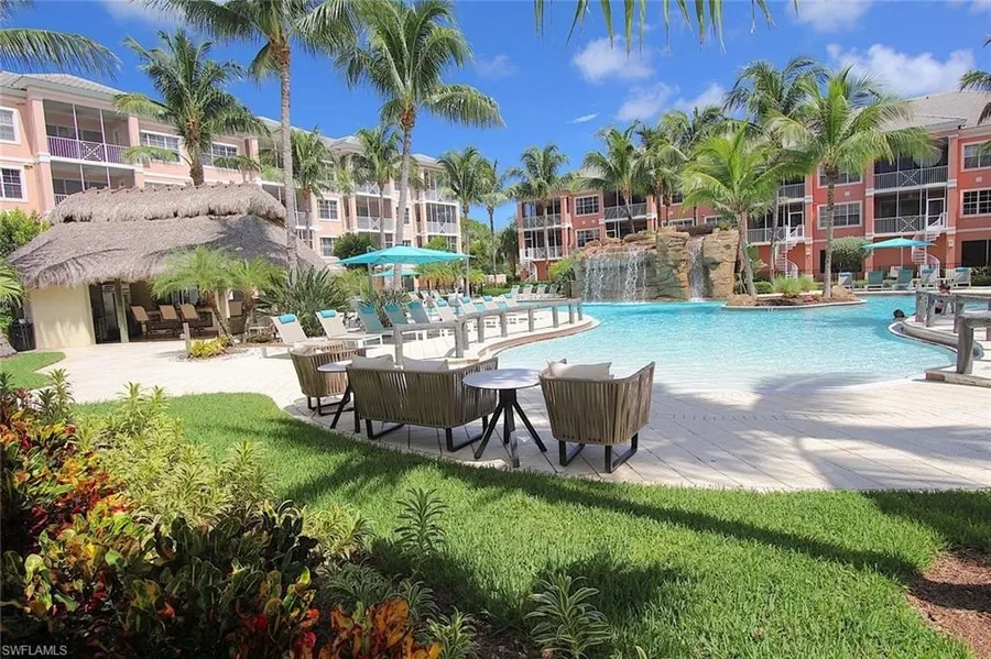 Feel at home in this beautiful 2 bedroom, 2 bathroom condo. Enjoy the soothing sights and sounds of our waterfall and Resort Pool from your private lanai. This third-floor condo has one of the best views in Bonita Village complimented by contemporary furnishings and a fully equipped kitchen.