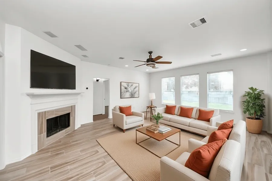 Discover this spacious single-story 4-bedroom, 2-bathroom home on a prime corner lot in the sought-after Copper Village community. Boasting a generous 2,794 sq ft, the home features an open and versatile floor plan, including a flex room perfect for a theater, office, or playroom to fit your lifestyle. The bright and airy living spaces seamlessly connect to the kitchen, equipped with ample cabinetry and appliances, ideal for family gatherings or entertaining. Hardwood-style flooring throughout the main areas and plush carpeted bedrooms add warmth and comfort. Step outside to the fully fenced backyard offering space for outdoor activities, while the corner lot location provides privacy and added curb appeal. Enjoy unmatched convenience with easy access to West Rd, Hwy 6, and the 290 Freeway, making your commute or weekend adventures a breeze. Located in a family friendly neighbor...